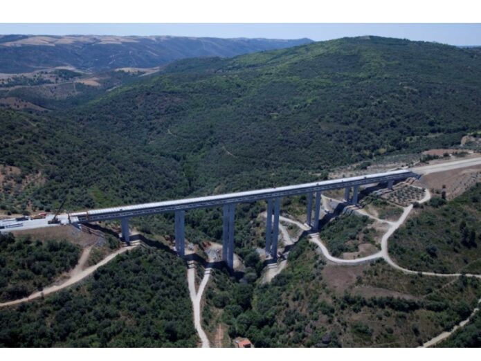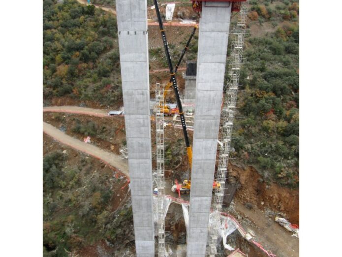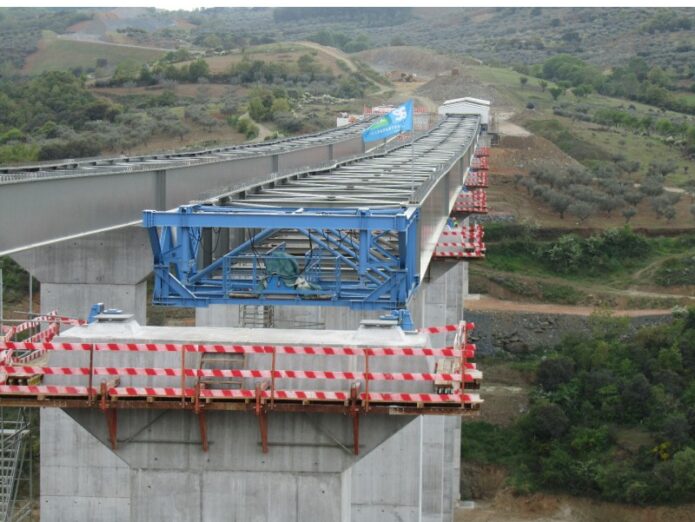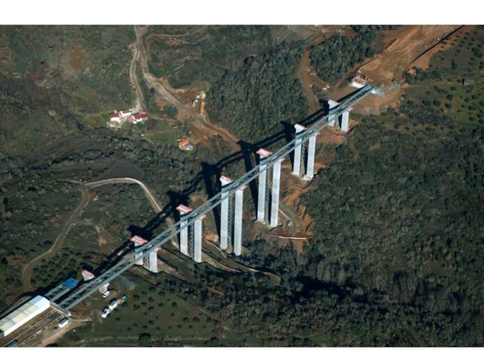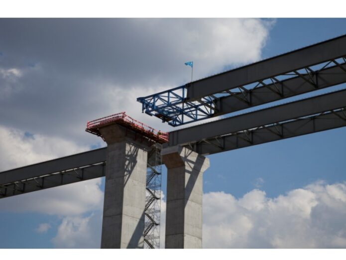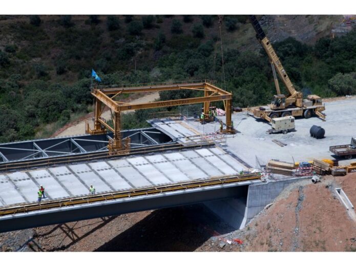 Resumen: Tablero doble en solución mixta de acero-hormigón. El tablero fue posicionado por lanzamiento incremental a partir de los estribos. La losa entre vigas está íntegramente prefabricada.