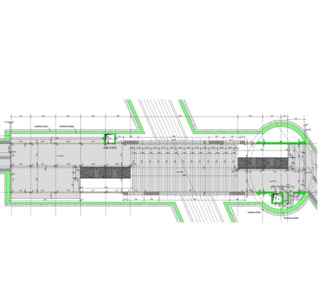 Description: Compte tenu des conditions identifiées, à savoir le Jardim do Carregal (nécessité de préserver les arbres d’intérêt public), le tunnel routier de Ceuta et la traversée de cette zone par la rivière Frio, ainsi que la profondeur du nouveau métro, la station Hospital de Santo António (HSA) est une station minière avec 2 cavernes. La station est composée de: