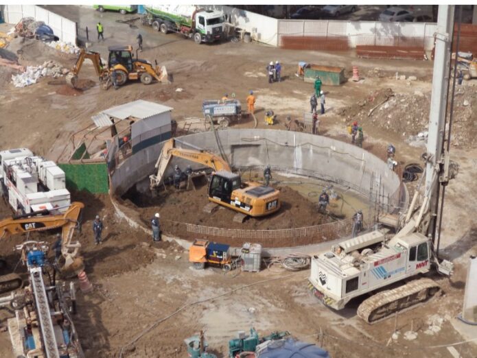 Description: Génie Civil (Structures) pour deux stations. La première (Station Ouest) est inséré dans un puit circulaire Ø=30m et la seconde dans un puit elliptique avec 27m sur l'axe principal et 55m et 57m de profondeur, respectivement. Les plates-formes sont construites dans la partie inférieure et dans une galerie minière avec excavation à partir des puits.