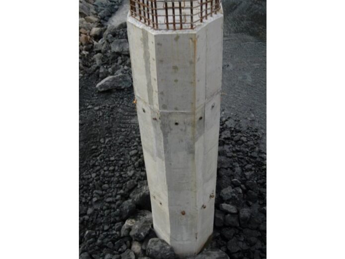 O tabuleiro é composto por 7 vigas pré-esforçadas pré-fabricadas solidarizadas através de uma laje de betonada in situ.