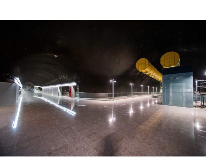 SummaryThis is a station with a deployment area with more than 9000 m². The structure includes an electrical substation, 3930 m² access and two ventilation shafts 24 and 33 m high and 17 m in diameter. Various external constraints have forced the adoption of several constructive ways: cut-and-cover, tunnel boring machine, indirect method and shaft excavation and prefabricated construction.